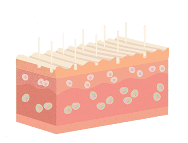 Each microchannel is surrounded by healthy tissue, which enhances the healing process. In response to each micro-injury, an inflammatory healing process begins which initiates the formation of new collagen.